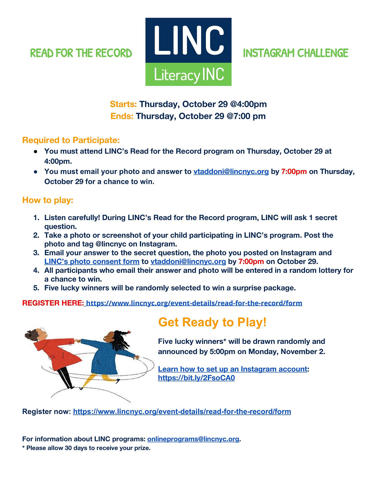 All online program attendees will be eligible to participate in LINC’s Instagram Challenge and have a chance to win an extra special friendship package from LINC! Download our consent form and see instructions below.