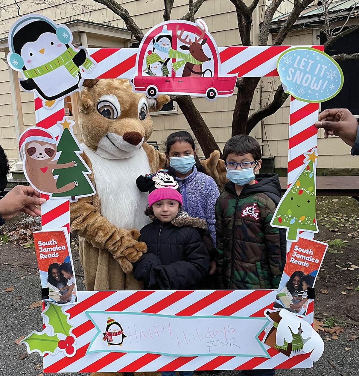On Saturday, December 11, the South Jamaica Reads Initiative (SJQ) spread a whole lot of cheer, along with the joy of reading at the annual Holidays on the Avenue festival in South Jamaica, Queens. This tradition, started by Cultural Collaborative Jamaica (CCJ) in 1995, was back by popular demand with well over 350 children in attendance outside the King Manor Museum. In addition to storytime, families enjoyed free workshops, arts and crafts, music, photos with Santa, and yes, gifts!